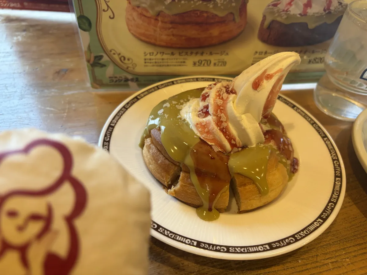 トップ > コメダ写真館 > シロノワール ピスタチオ・ルージュ🤍💚❤️ コメディストA 2025/12/29 23:10 シロノワール ピスタチオ・ルージュ🤍💚❤️ 皆さん♪こんばんは🌟 昨日はのんびり出来なかったので、今日はリベンジ👍 シロノワールミニ ピスタチオ・ルージュ💚🤍❤️食べやすいよう、8分割をお願いしました💘 ソフトクリームがやや少なめで傾いています💦 デニッシュを8分割にしてもらったので、ストレスなく美味しくいただけました🥰 ピスタチオ・ルージュ、彩りもお味も優しくて、とっても美味しかったです💓 今年も残すところあと2日。 皆さまお忙しいとは思いますが、体調管理にお気をつけになって、素敵な年末をお過ごしくださいませ〜💕 シロノワール ピスタチオ・ルージュ いいね 共有する 共有する X facebook LINE リンクをコピー コメントする 2 件の返信 (新着順) ミュートしたユーザーの投稿です。 投稿を表示 帰ってきたカフェインマン 2025/12/30 21:56 甘くてメチャ美味しそう。😋 いいね 返信する ミュートしたユーザーの投稿です。 投稿を表示 コーン 2025/12/30 10:14 コメディストAさん、おはようございます! 右から左から風が吹いていますね🤭🍃 8分割食べやすそうですね!美味しそうです🤤💕 あっという間にあと2日🙄時が経つのは早いですねー😱 いいね 返信する ミュートしたユーザーの投稿です。 投稿を表示 コメディストA 2025/12/30 22:18 コーン コーンさん🌽こんばんは🌟 右から左へ風が吹いて、ソフトクリームが飛ばされそうです😅 マイコメと第二マイコメのシロノワールは、いつも第二マイコメの方がソフトクリームがたっぷりな事に気がつきました💦 シロノワールを注文するときは、第二マイコメにします(笑) 本当に月日も時間も経つのが早いもので、何もしないまま時間だけが過ぎていってしまいます💦 明日はもう大晦日🥰 何もせぬままあっという間に除夜の鐘を聞くことになりそうです💧 今年一年、コーンさんには大変お世話になりました🙇♀️ また来年も今年同様に宜しくお願い致します🌹 良いお年をを迎えくださいませ💕💕💕 いいね 返信する
