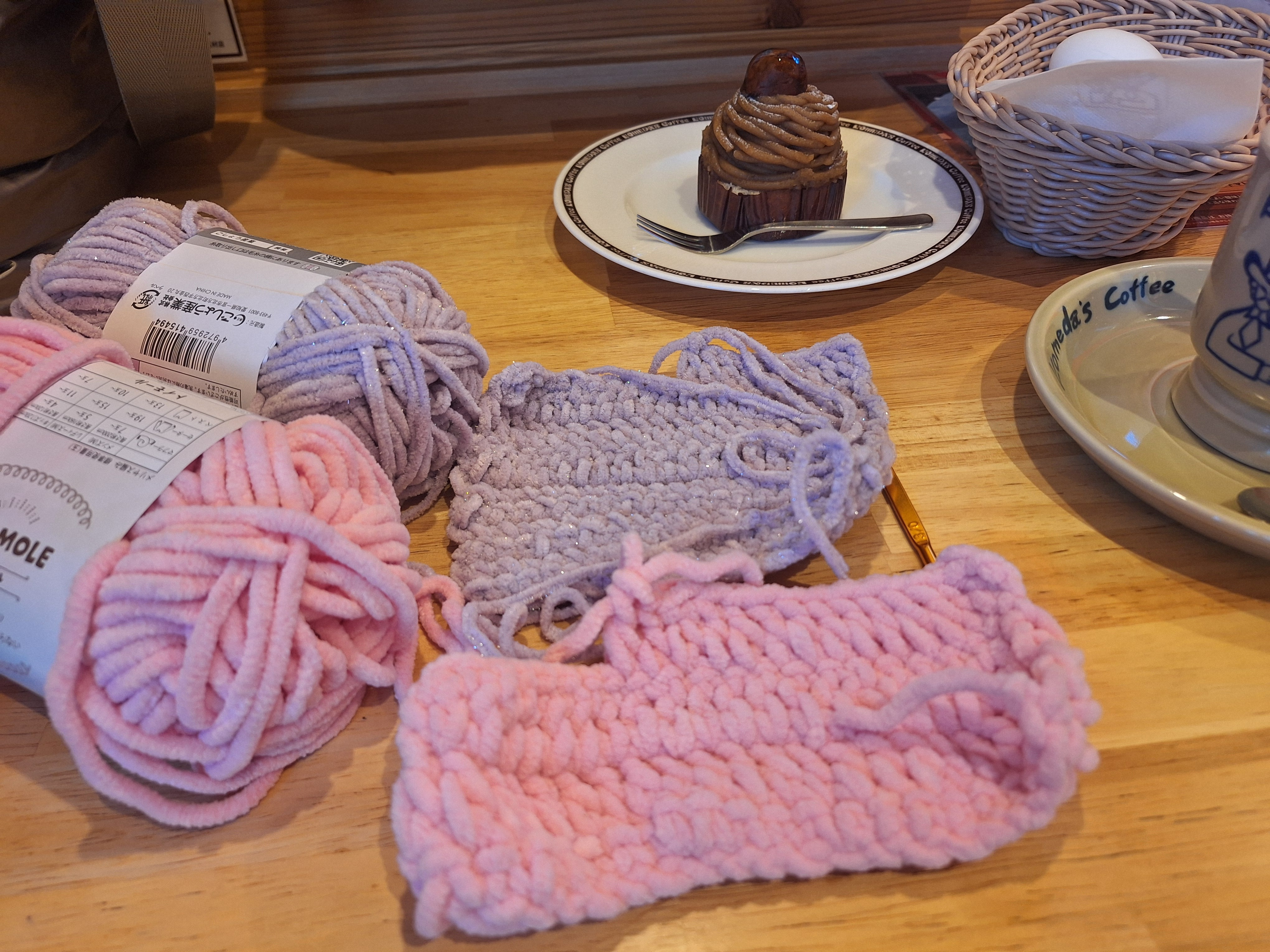 コメダで編み物🧶