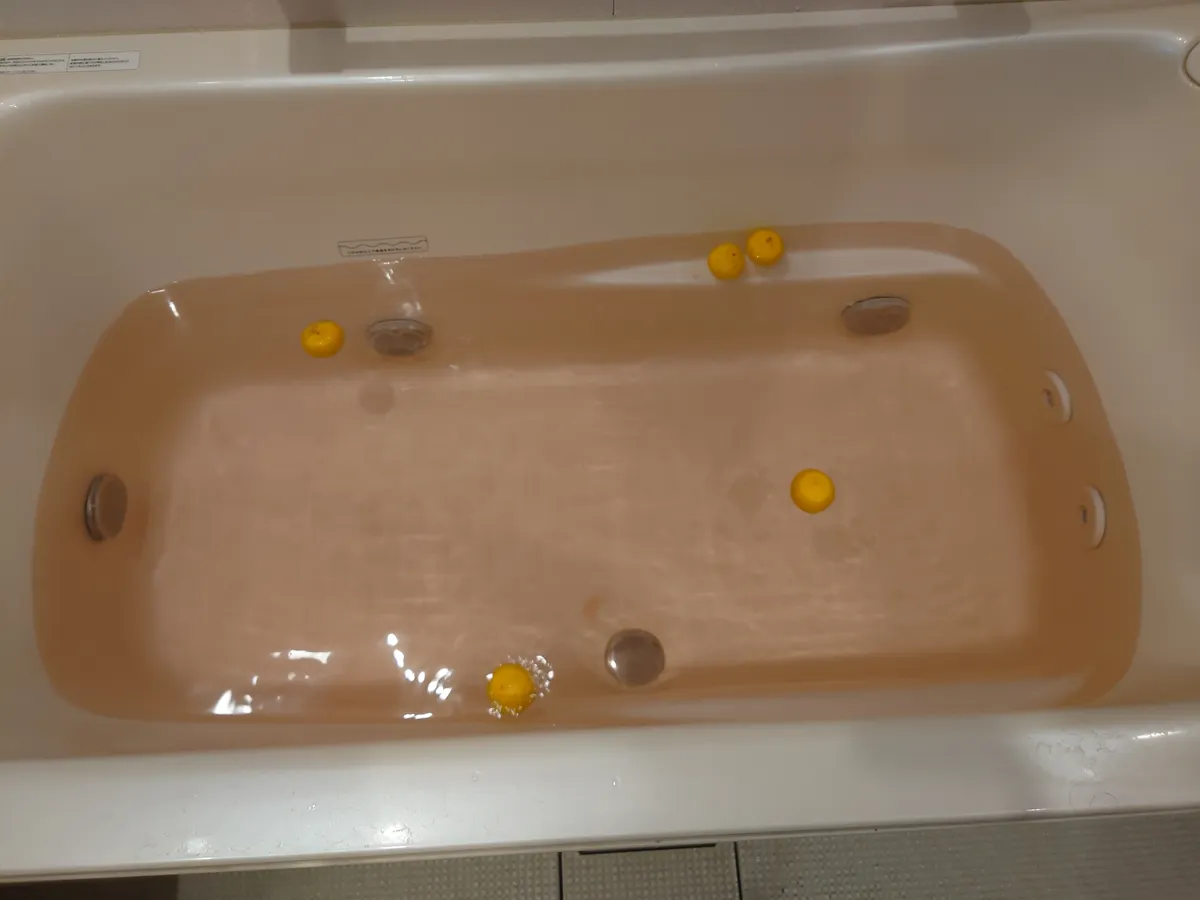 柚子を貰ったので、冬至から入れているのに効き目が無いのですが、柚子迄入れて入浴。