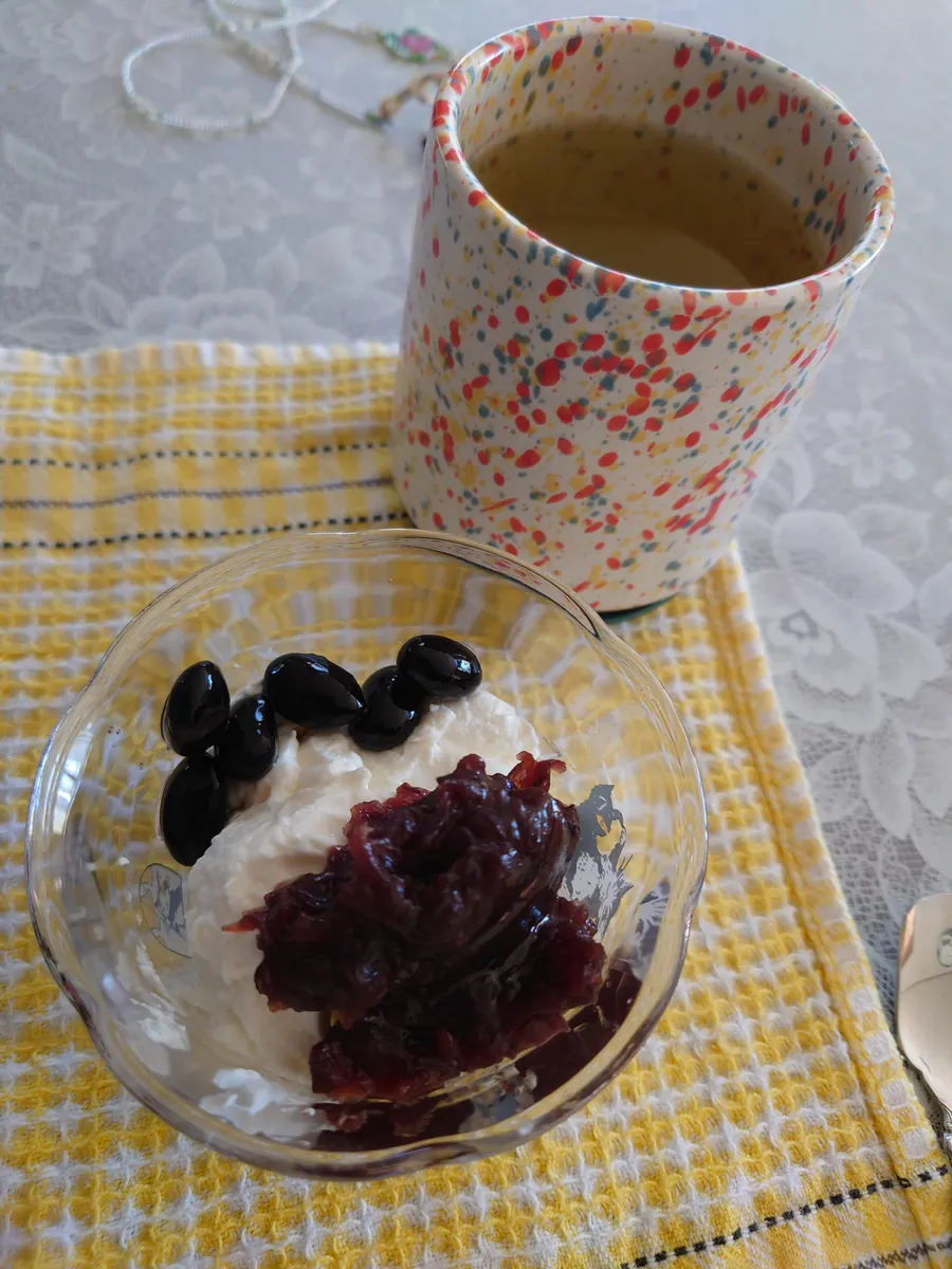 ヨーグルトは、暮れに水切りヨーグルトにして、黒豆と小倉餡をトッピング♪