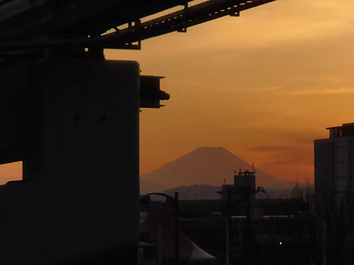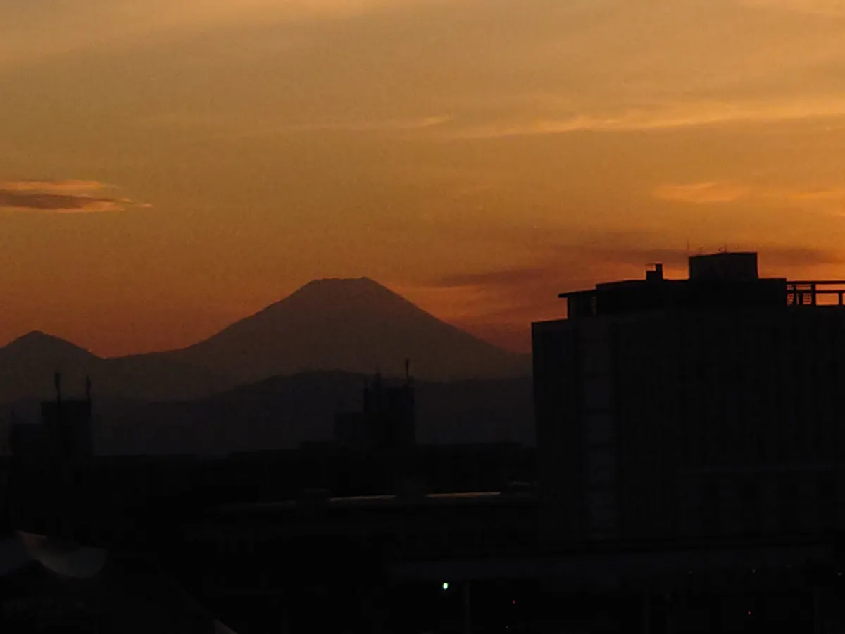 夕方になり、駅から冨士山が見えます。