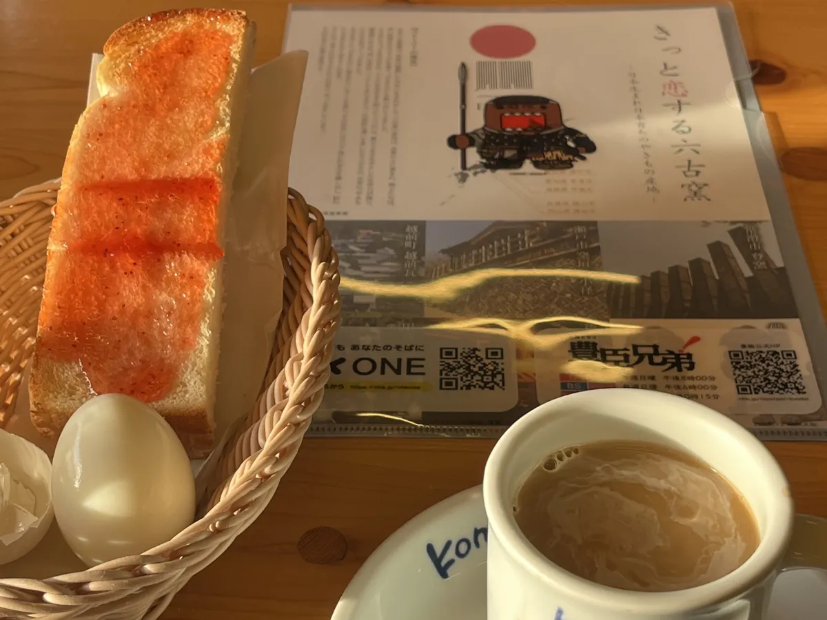 すぐに来たモーニングは、白磁のカップがきれいでした。たまごもつやつやでした。ジャムが、透き通っているだけきらめいて、甘くておいしかったです。