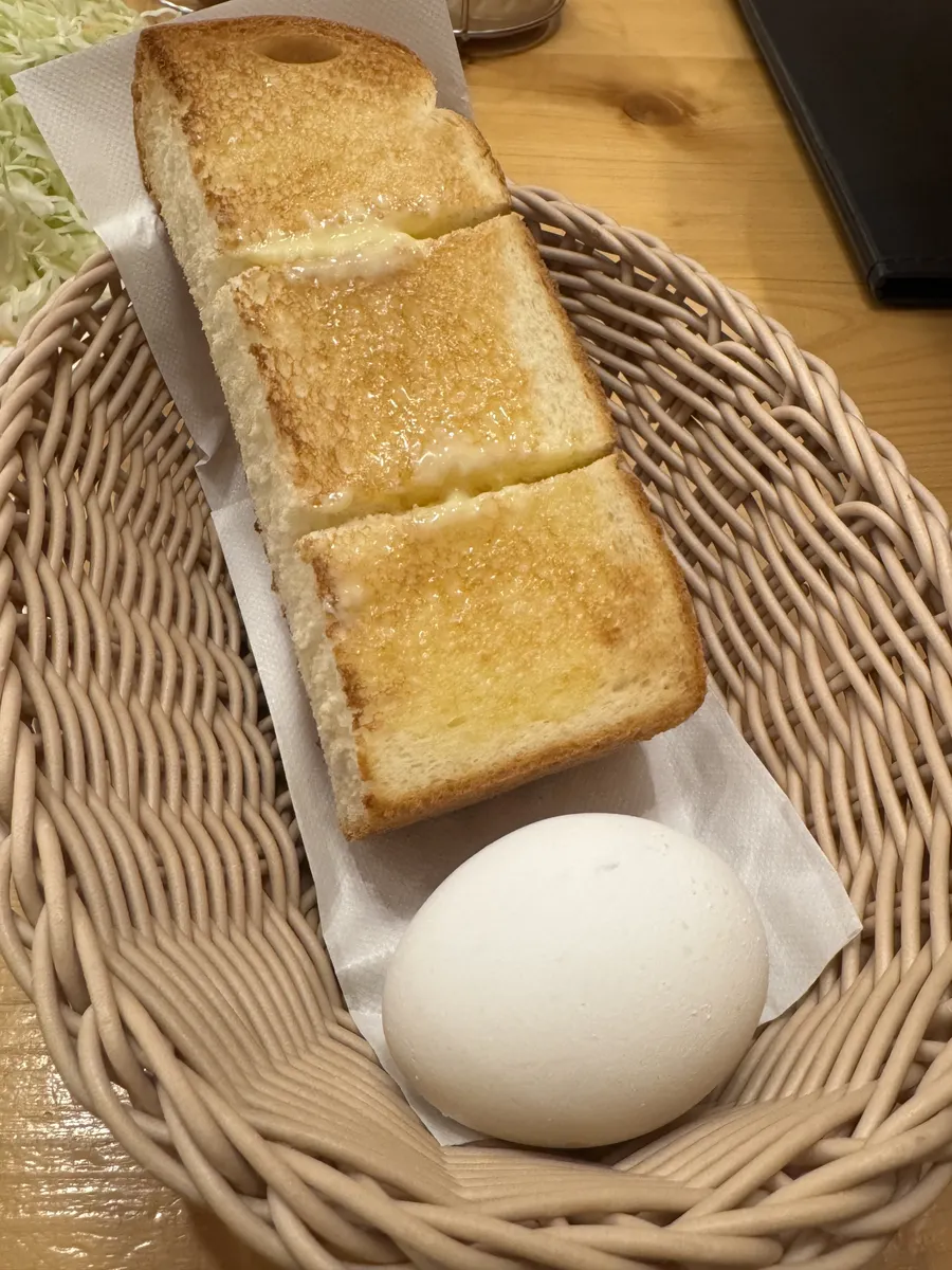 こんがりサクサクトースト🍞の1番モーニング。切れ込みが深いので、バターが上手く染み染みでゆでたまご🥚さんのお力を借りずに済みました🤭。