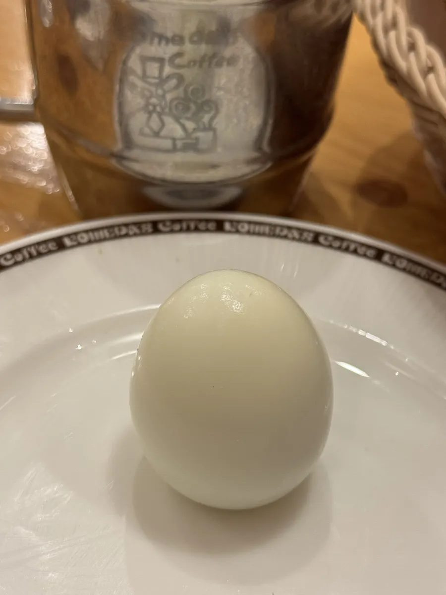 ゆでたまご🥚さん、大好きなコメダおじさんを見つめていたら自分の姿も映っていて嬉しそうです🥚🎶。