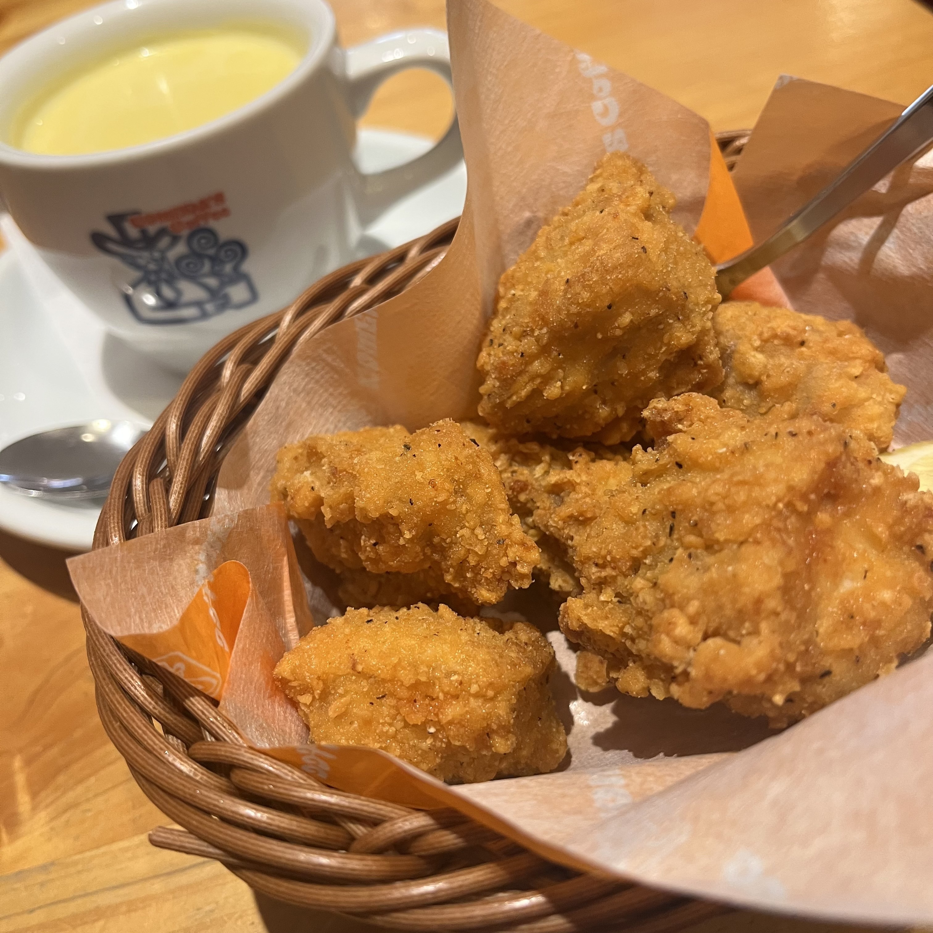 コーンスープにコメチキも安定のランチ、美味しそうです😋