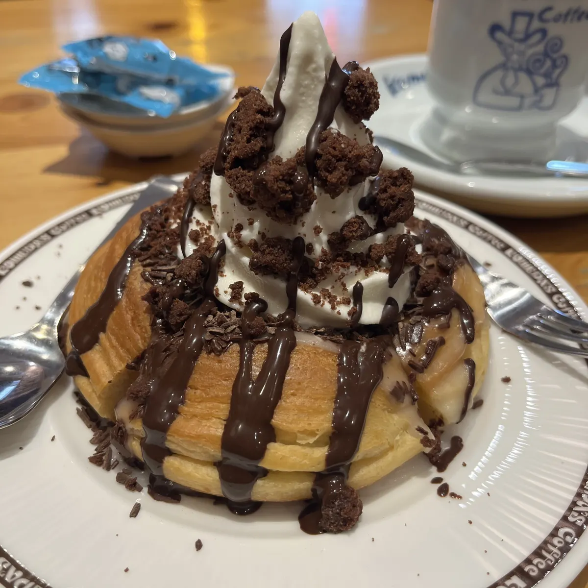 コーンスープの後に、コメダブレンド☕️+ショコラノワール🤎