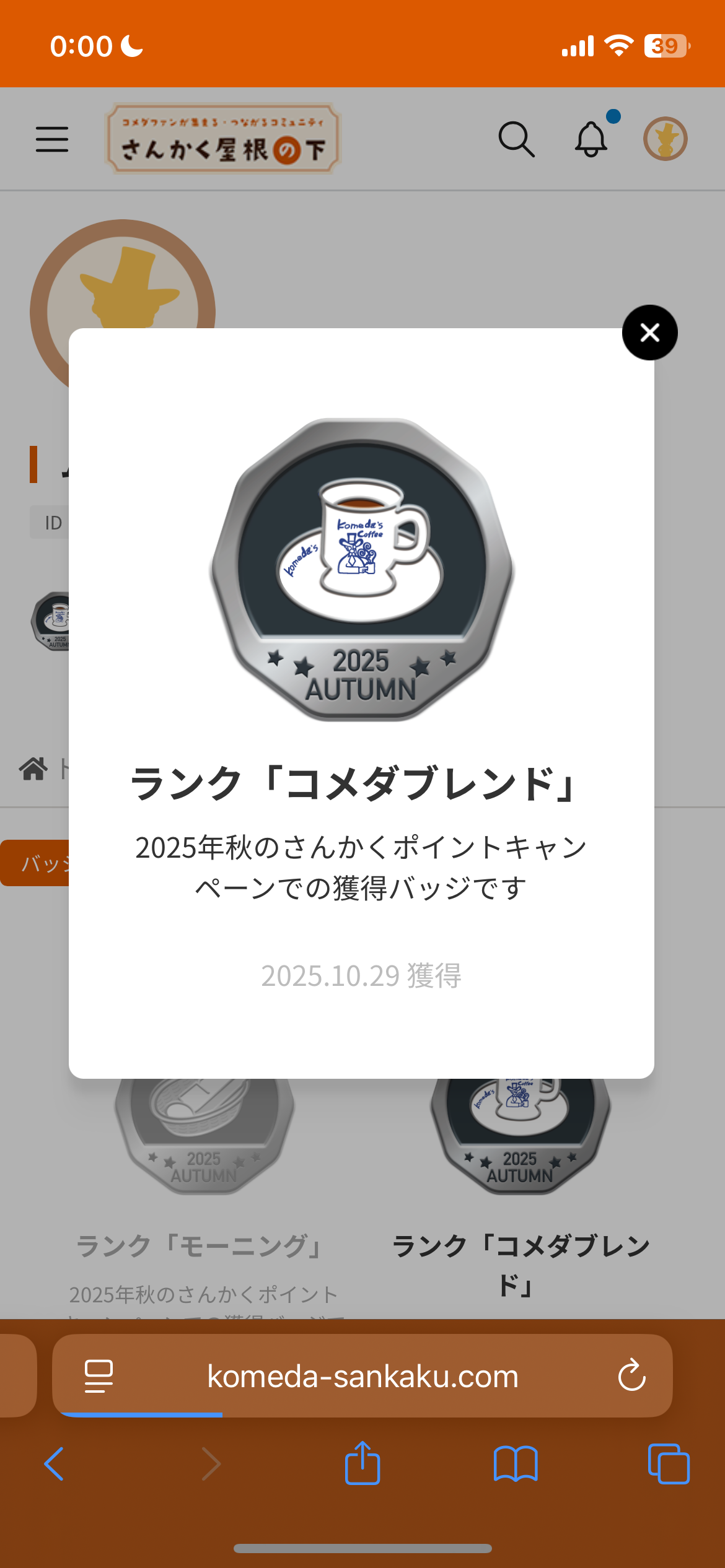 ㊗️さんかくポイントキャンペーン「コメダブレンド」ランクアップ⤴️バッジ獲得🏅おめでとうございます🎉🎉🎉