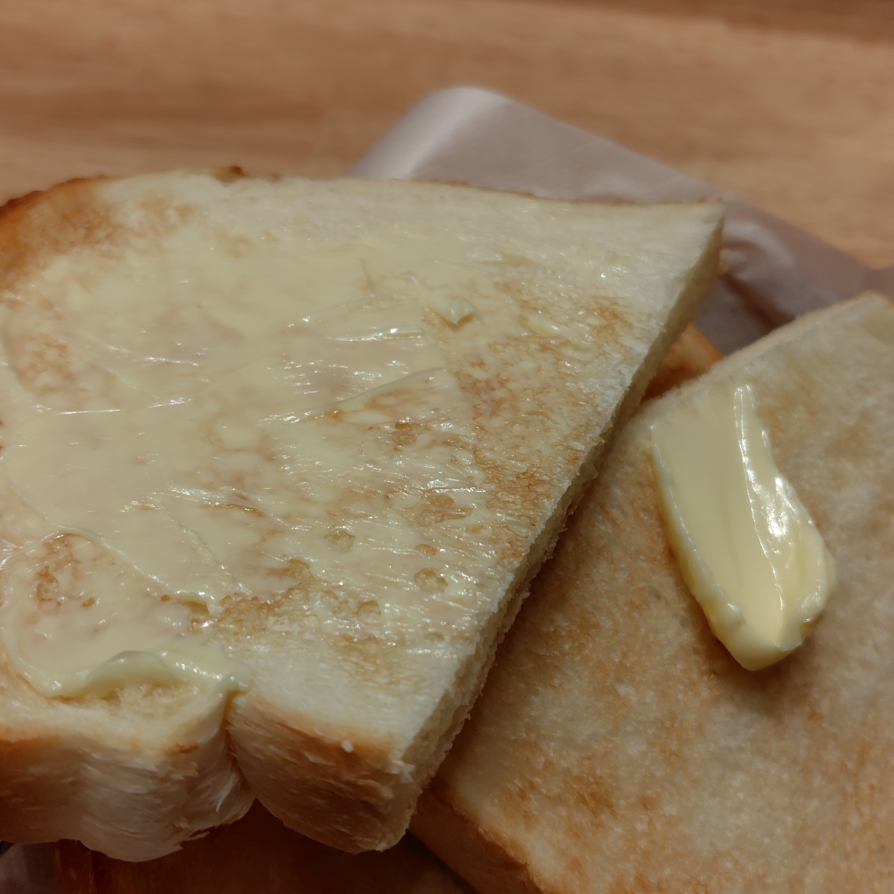 バターはしっかりトーストに染み込ませてから食べたいですよね〜🤤