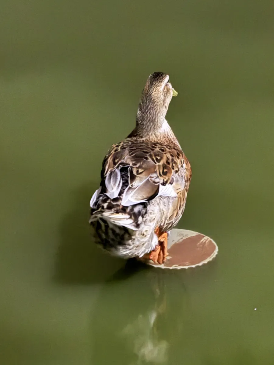 夜のお散歩で通った池では鴨さんが何か背中で語っていました🦆