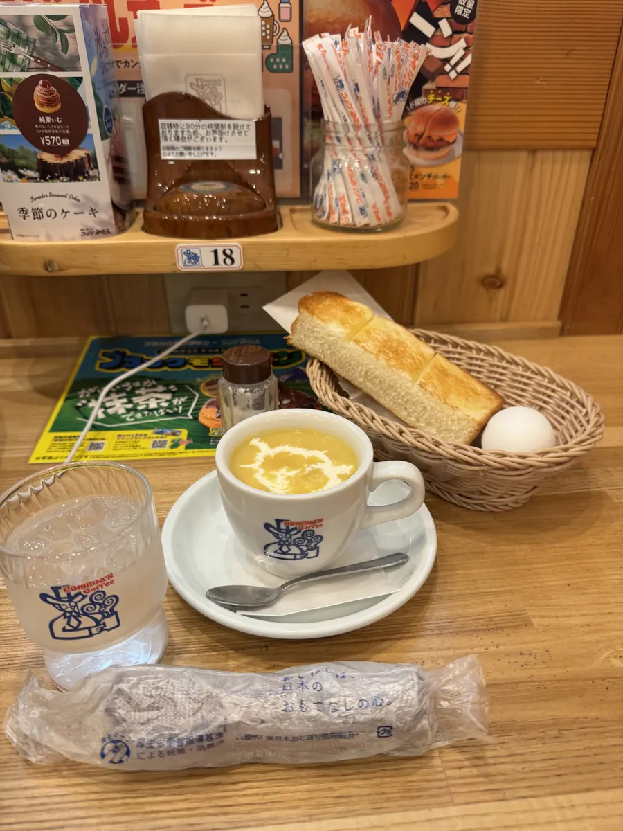 投稿を表示モーニングにコーンスープを選んだら、ぜひトーストをスープにつけて、つけパンにして食べてみてくださーい🌽飲むとはまた違った味わいが楽しいですよ😋