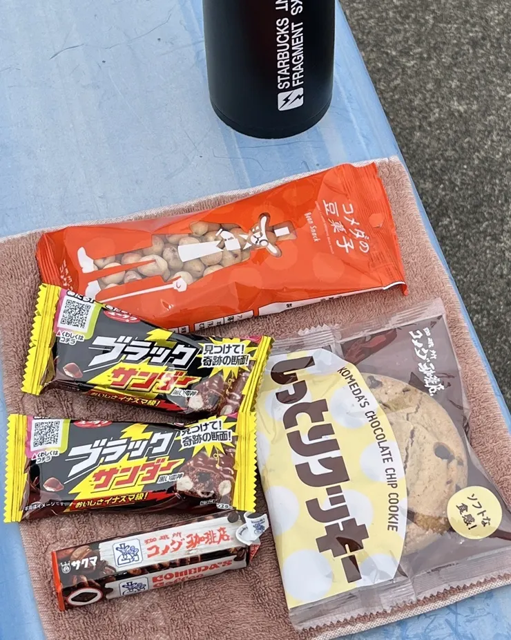 おやつはあらかじめ名古屋のコメダと、現地のコンビニで買いました。まさか全部を一度には食べませんが、これだけあれば、現地のコメダでは食べなくて大丈夫でした。