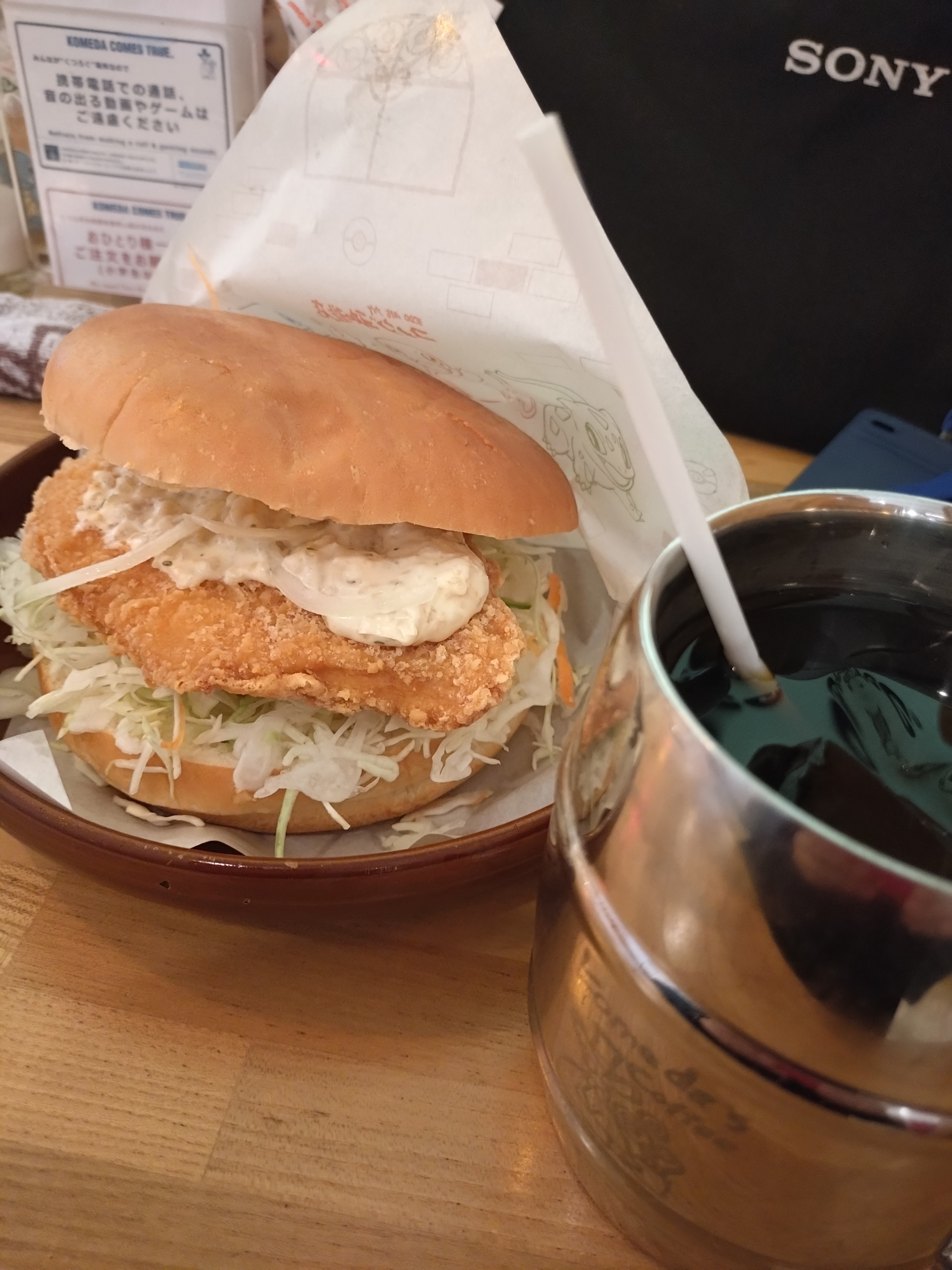 アイスコーヒーたっぷりサイズ&鶏タツタバーガーレモンタルタル美味しそうだぎゃー🤤✨