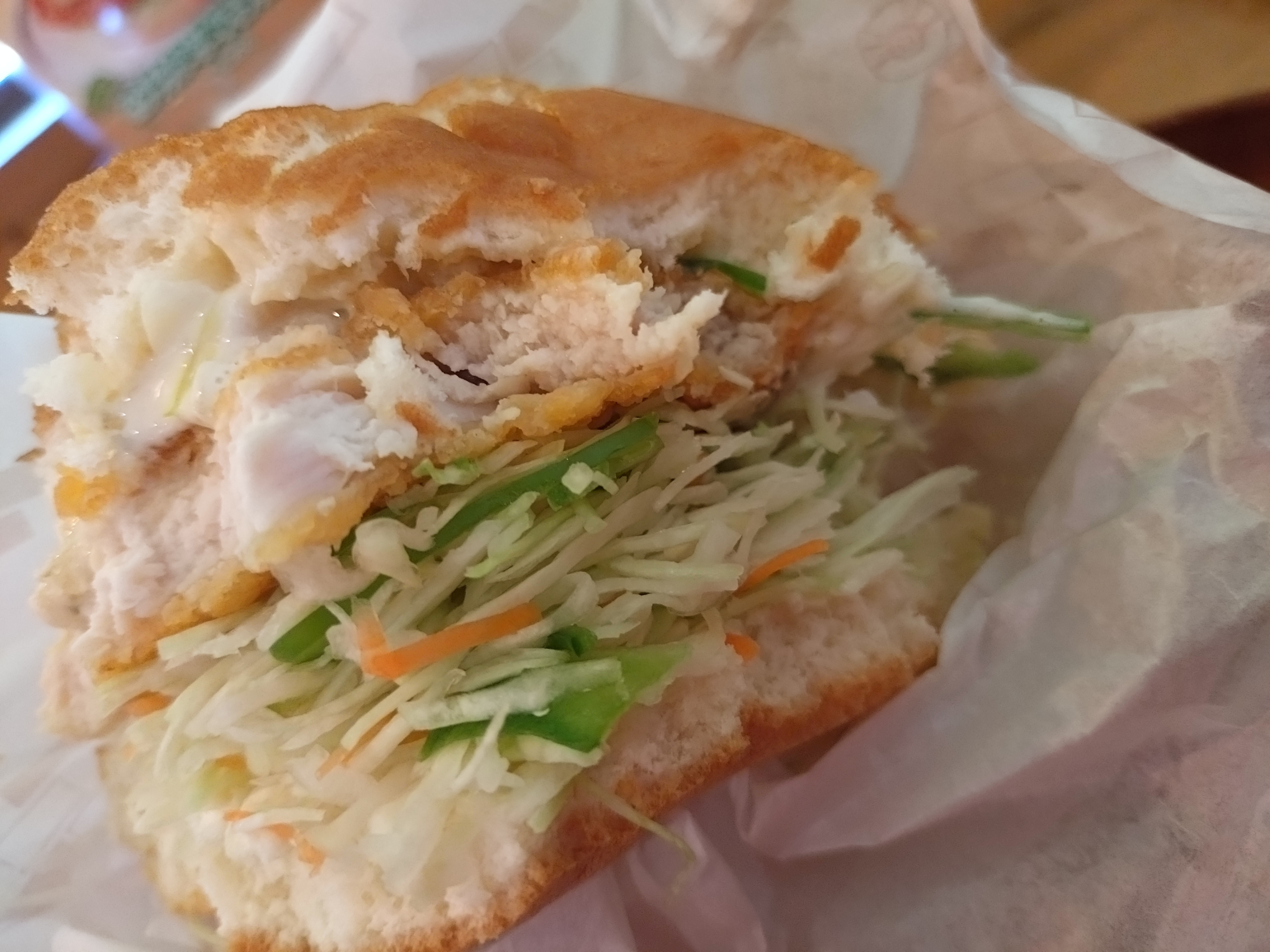 鶏タツタバーガーレモンタルタル、美味しそうです。キャベツ、にんじん、ピーマン、野菜たっぷりですね。