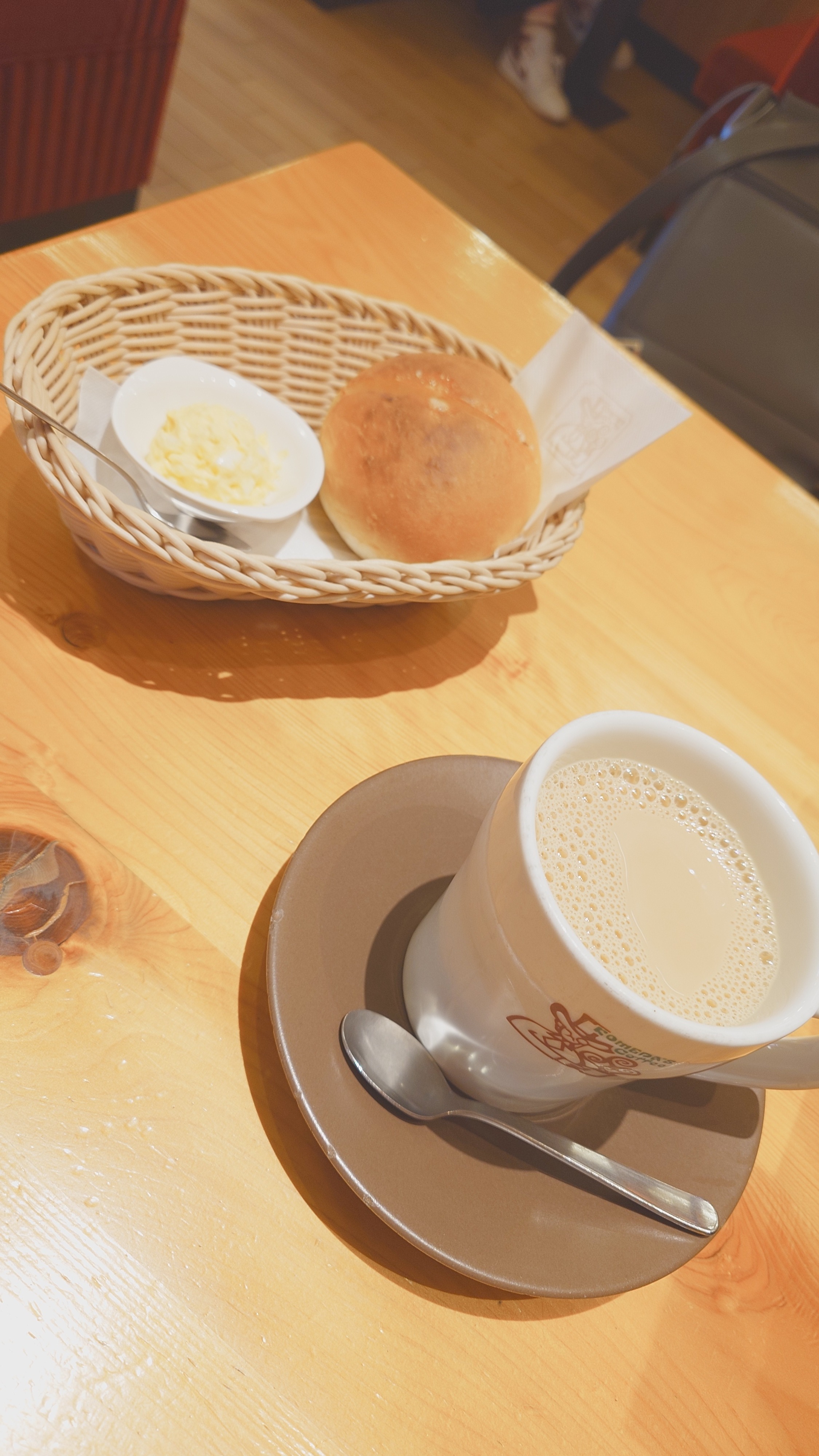 安定の5番モーニングにたっぷりサイズのカフェオーレ☕
