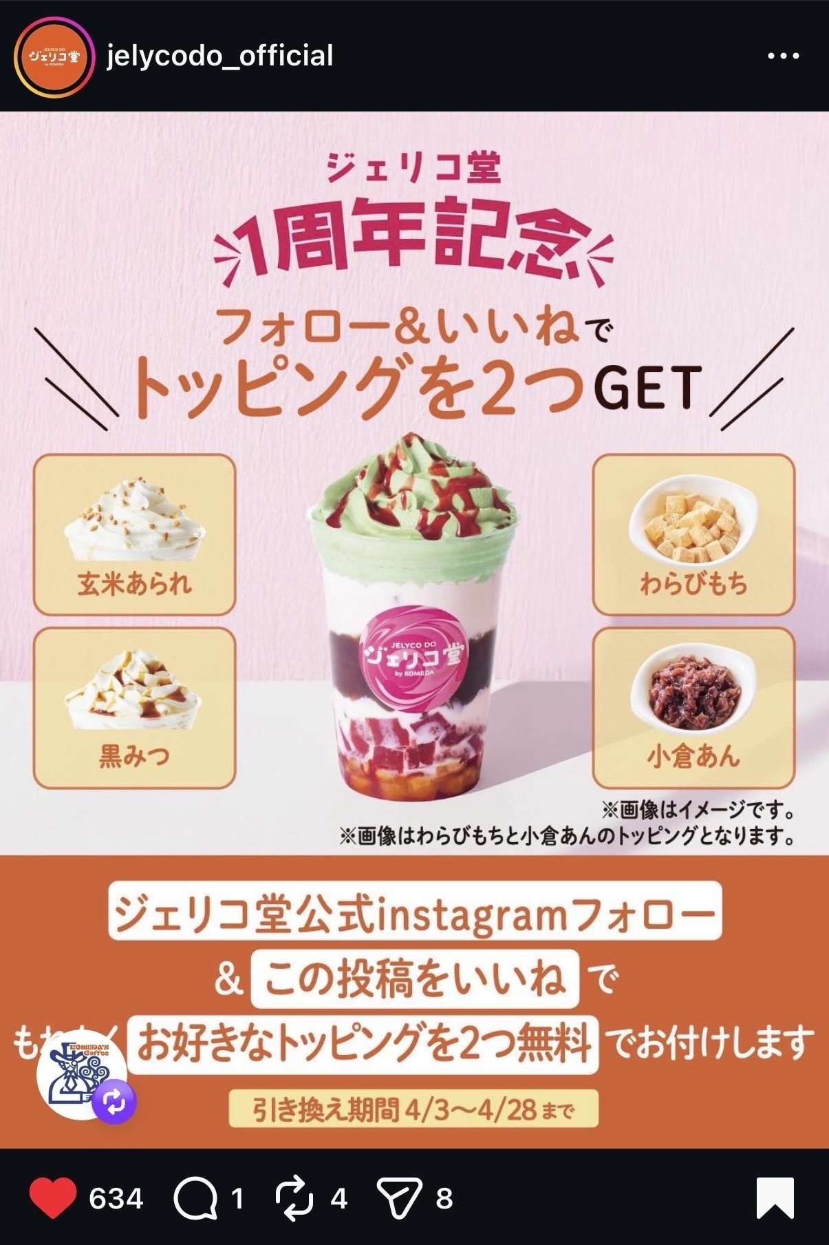 今回のジェリコ堂のインスタでは、スタッフさんに見せたらすぐにその場でトッピング2つプレゼントではありませんか🎁