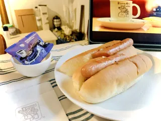 ⭐️おうちでdeコメダ⭐️ 先日の おうちdeコメダ YouTubeでコメダBGMを掛けながら♪ 久しぶりにホットドッグをお持ち帰りしましたー☺️✨冷めてもパリッとしたソーセージにソースの味とキャベツの食感がマッチしてとても美味しかったです〜(*´ч`*)💕豆菓子もそれっぽいお皿にそえてみました😋笑&nbs