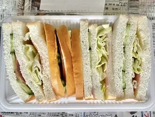 今日はハムサンド 今日のお昼ごはん、モーニングに寄った店舗でテイクアウトしてきたハムサンド🥪朝から楽しみで🤭日曜日は休憩時間が取り易いの。ぜったい溢すから古新聞敷いて、テッシュ置いて🙂さてと喰らうか😋ミックスサンドは持ち帰り不可