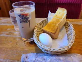 ちまんずさん 山食パン🍞最高ですよね😀 ゆでたまごも外せません‼️ アイスレモンティー🍋お初でした。 次はレモンスカッシュ🍋
