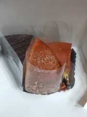 花金でケーキ 売り切れでお目当ての2種は買えず、予定外となりましたが、美味しいのサイン、うなずき2ついただきました✌️そして、味見させてとフォークが入り、小さな断面ができあがりました😅