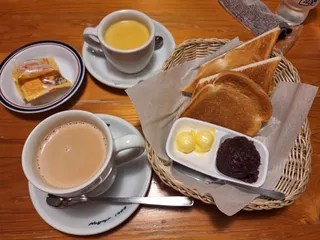 はじめましてよろしくだがね😃 エッグトーストとミルクコーヒーたっぷりサイズ美味しそうだぎゃー🤤