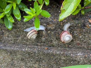 カタツムリです。 同じ方向に、動いています。仲間が、たくさんいました。