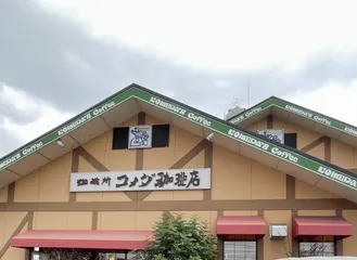 コメダ珈琲店 植田店‼️ 今日は友人の結婚式があったので天白の植田まで行きました‼️ 到着が早く式場は歩いていけるぐらいの距離だったのでコメダでモーニングを❗️ 入り口が少し独特だなぁと思いましたが店内見て古いコメダかな?という印象でした。 今日はアイスウインナーをあれ?デカい!アイスココアの入