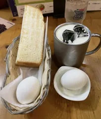 今朝の定番モーニング 朝イチサウナ🧖♀️からのコメダ珈琲店モーニング☕️浴場から見た暖簾🤭