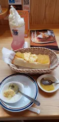 久しぶりモーニング 仕事のシフト上、なかなかタイミングが合わず、2週間ちょっと振りにモーニングに来ました。たまごペーストにしようと思ったけど、急にブルーベリージャムに変更して、ゆで卵を追加。満足のモーニングになりました。