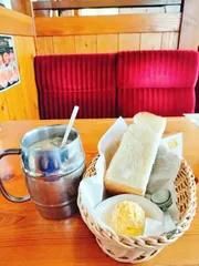 タダさん、おはようございます😃 コメダでモーニング美味しそうだぎゃー🤤✨ コーンスープ、ヨシ! K♡、ヨシ! ミニサラダ、ヨシ! トーストぬる豆乳、ヨシ! よく焼き、ヨシ! 🟨豆付箋、、残念💦 5ヨシ!コメ活✨完璧👍