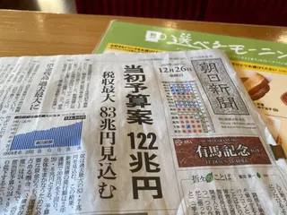 お正月ので2日間お休みだそう 今朝は飢えていて、直ぐにモーニングを完食、後片付けも終了、食後の写真です。直前にお正月の2日間のお休みを確認したので、寂しさから、おあずけの記念写真を失念し、早食いしてしまいました。