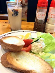 コメントありがとうございます サラダバケットは、コメダでは、 罪悪感が少なめなので、 注文し易いですね 同じくカフェイン少な目で、 胃の痛くなり難い、 ミルクコーヒーと合わせるのが、 最近の定番だったりします☺️ このお店のバケットは、よく焼きで、 盛り付けには、あまり凝っていない? という印象