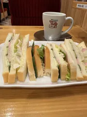す〜にゃさん、おはようございます😃。 仕事モードに入るといつお昼休憩に出られるかわからないので、ガッツリとモーニング&ランチをいただきました〜٩( 'ω' )و❤️✨。 もちろんコメ活がメインです(笑)🤗。 お元日から『今日のラッキーメニュー』を食べてみようチャレンジを始めて3日目はハムサンドでした