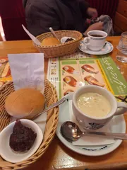 クラムチャウダー 今日から、定番化したクラムチャウダーとローブパンに小倉餡です。連れ合いは、いつものモーニングです。
