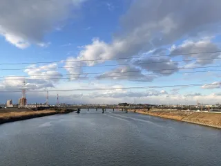 午後の日差しにあたりを明るくする冬の枯れ草が好きです。(名古屋市中川区 新前田橋)