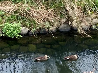 親子?番? 朝のウォーキング時に歩いた川縁。親子?番?の鴨🦆さんが、仲良く、気持ち良さげに泳いで居ました。その様になんかほっこり🥰