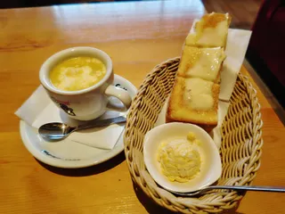 モーニングコメダなう。 みなさまおはようございます☀ 今日はBモーニング(よく焼きバター多め) コーンスープ🌽 いちごミルク🍓(たまごのみのモーニング)。。 先週出来なかったひたパンをし… 最後の一切れだけシュガーバターにしました🤗 シュガーバタートーストめちゃうま❗️ たまごペーストもやっぱり美味