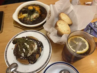 初めてのビーフシチュー💖 実は、ビーフシチュー頼んだ事なくて、初めて頼んでみたら、ゴロゴロビーフ、真ん中にポテサラ⁈上手くて、温まります〜😍美味しいかったです♪