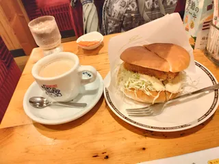 本日のコメダ ランチはいつものミルクコーヒーとフィッシュフライバーガー♥それにしても 急に日焼け注意報😥寒暖差に黄砂 一体どうなってしまってるんだろ😥
