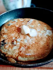 【幸せエピソード】 おはようございます 現在 2:50 夕飯食べずに寝てたらお腹がすいて目が覚め 今夜は フライパンでブルーベリー入りの米粉パンケーキを焼きました いつもは レンチンで作るのですが 焼ける香りを嗅ぎたくて ゆっくり時間をかけて コンガリと