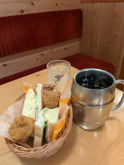 夜コメダ たっぷりアイスコーヒーとミニサンドバケット。たまごたっぷり、ありがとうございます😊。
