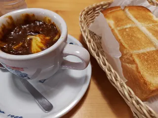 チーズがのび〜〜〜〜〜る メニュー名:チーズカリートーストおすすめ度:★★★★★/5個中チーズがのびる度:★★★★★/5個中コメント:『やや辛め』の表記に迷いましたが、でも美味しそうなのでチャレンジ。パンをカリーに浸して持ち上げると、絡んだチーズがのびる、めっちゃのび〜る(笑)辛いのが苦手な私でも大丈夫だった〜、凄く美味しい