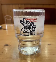 コメダグラス😅 赤のコメダ文字も青のコメダおじさんも消えてるの。てか、痕跡全く無し❣️元々コメダグラスでは無いのか❓型は同じです😅