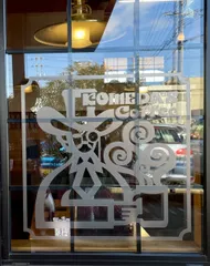 ちょっと珍しい窓ガラスのコメダおじさん。今までに、何回も通っていたのですが気づきませんでした😆