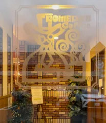コメダおじさん 明日、閉店店舗のガラスには白では無くて屋根と同じ色の“こげ茶色”のコメダおじさんが❣️明日まで見守ってくれるのですね🥲