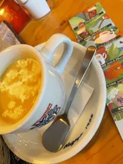 コーンスープに浸そう 今日の1杯目はコーンスープモーニングのパンに浸して食べます最高😆