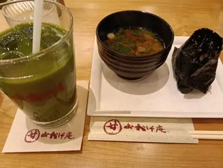 2026年初のおかげ庵モーニング☆ いつも土日に行くのですが、9時台だと並ぶことはないので、全く同じ時間の電車で駅につき、余裕かまして、コンビニだけ寄って、店についたら…30人待ちだった^^;その間、クレーンゲーム行って、小さいぬいぐるみを2個、アルフォートを3個取りました☆モーニングはいつもの★おにぎり🍙は、昆布で!