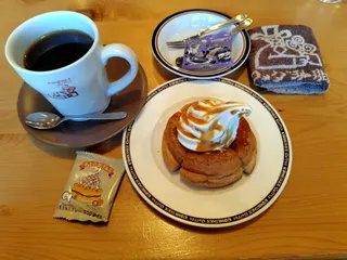 ゴマゴマさん🌿 ㊗️再就職おめでとうございます🎉 ご褒美のシロノワール クルミッ子 美味しそうですね😋 たっぷりサイズのカップ、コメダおじさんの顔が消えているの初めて見ました🤓