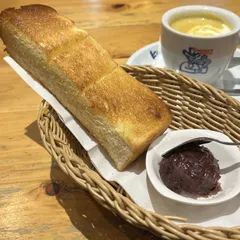 コーンさん、こんばんは😃。 雨にも負けずにコーン🌽スープモーニング🎶、トースト🍞が側面までこんがり小麦色でとってもサクサクで美味しそうですね〜💝✨ おぐらあんがまんまるで可愛いです❣️ アメリカン&コメチキの美味しさを考えると土砂降りの雨も心地良く感じますよね٩( 'ω' )و‼️ こちらも夜は土砂