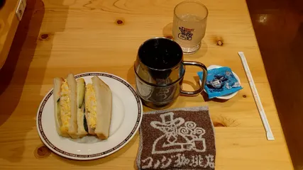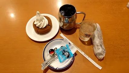 大寒波の影響で寒い、、、日差し☀️はあったかいけど、、、寒すぎてマイコメダに🚶♂️あったまり癒しに来ました😊 注文タブレットが不調、、、🛎今日は、あみ焼きホットサンド🥪😊チキンが柔らかく、甘いタレに後味ほんのり生姜風味⁉️ うみゃ〜うみゃ〜😋😋😋 デザートは😊まだありました!最後の、、、