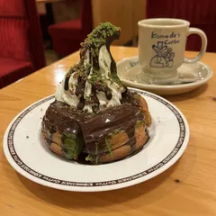 コーンさん、こんにちは😃 閉店前にシロノワールブラックモンブラン&カフェオーレ美味しそうだぎゃー🤤✨ 🤎💚360度ピジュアル、ヨシ! 今日は、☕️アメリカンでモーニング🫘🥯&ランチに🌽コーンスープで流行りの🌭ホットドッグ美味しそうだぎゃー🤤✨ 🌽ちんちこちん、ヨシ! 🌭よく焼き、ヨシ! 癒しのコメ